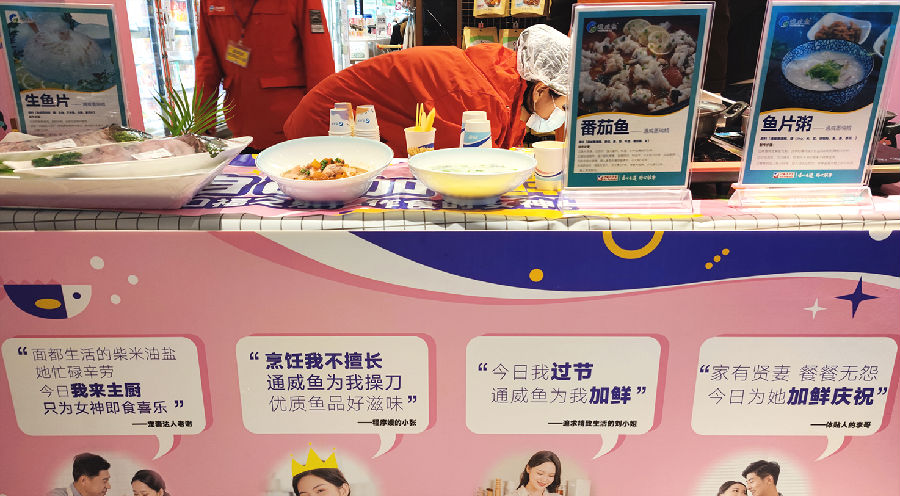 以“鮮”為題、服務(wù)女性為倡導(dǎo),顯露品牌的魅力之姿;通威魚廚師盡展烹飪技巧,為顧客呈現(xiàn)魚“鮮”好滋味。