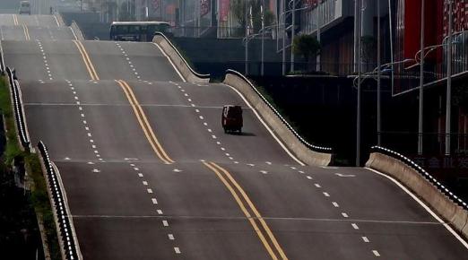 重慶巴南界石現(xiàn)波浪形公路,這條波浪形狀的公路全長(zhǎng)約300米左右,是當(dāng)?shù)亻_發(fā)商修建。因?yàn)榕赃叺纳虡I(yè)樓共有四層,為了方便每一層樓的商家能夠?qū)④囬_到門口,所以在當(dāng)初規(guī)劃的時(shí)候就設(shè)計(jì)了這段波浪形狀的公路,方便經(jīng)營(yíng)戶。據(jù)司機(jī)說開起車來有飛一般的感覺!不少網(wǎng)友調(diào)侃:不是我吹,來重慶幾天治好了我的暈車。