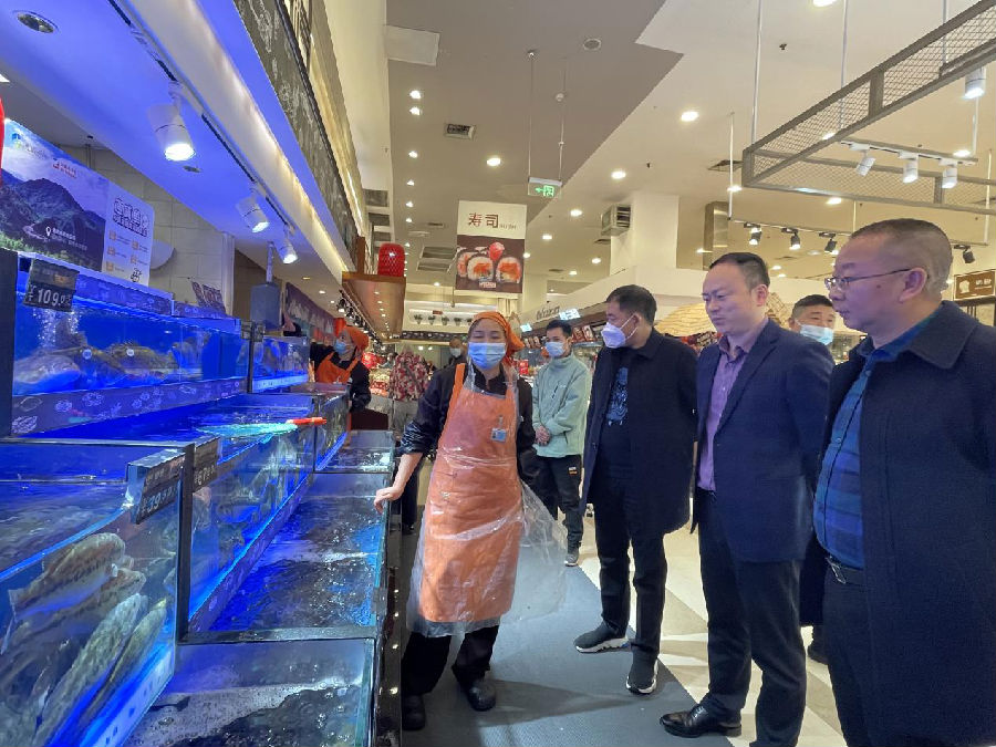 陳波總裁、薛峰副總經(jīng)理、黃勁松總監(jiān)向伊藤和SKP通威魚(yú)店促銷詢問(wèn)節(jié)日期間銷售情況并致以新春祝福