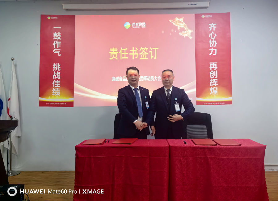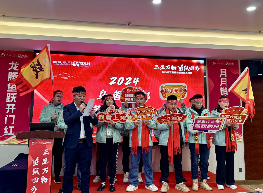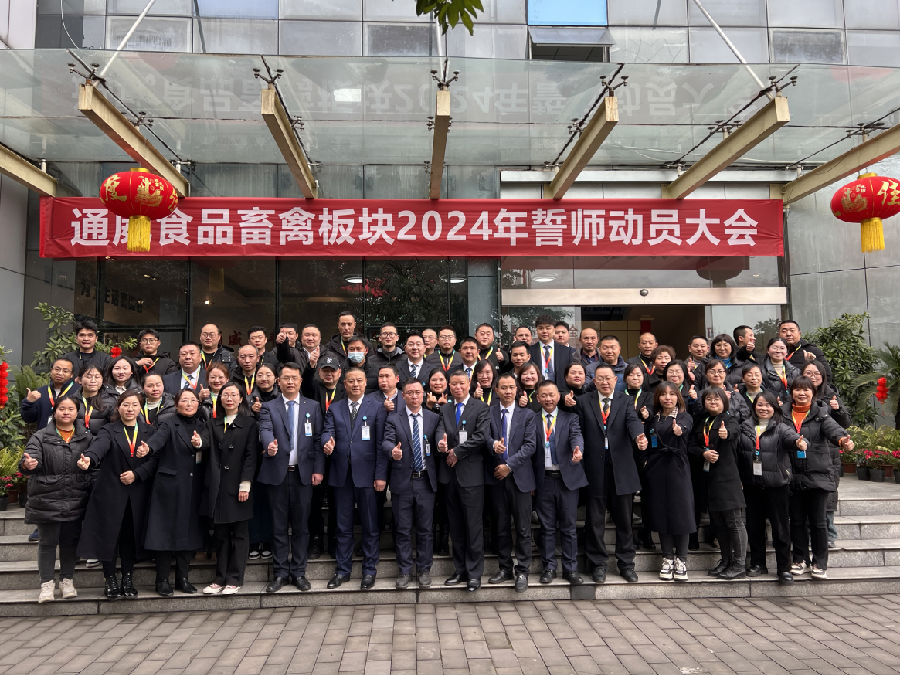 2024年新年開工第一周,通威食品各公司陸續(xù)召開誓師動員大會,通過部署2024年工作、簽訂軍令狀和團(tuán)隊宣誓等形式,激勵全體員工以更加飽滿的熱情和更加高昂的斗志,迎接新的挑戰(zhàn)和機遇。