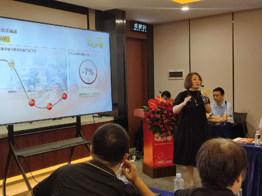 領(lǐng)導致辭環(huán)節(jié),通威食品副總經(jīng)理薛峰介紹了水產(chǎn)行業(yè)的發(fā)展趨勢與通威的行業(yè)地位。他提出通過提供高質(zhì)量、穩(wěn)定的產(chǎn)品以及確保經(jīng)銷商盈利來建立長期合作關(guān)系,并提出了通威食品未來的擴張計劃,以實現(xiàn)公司的長遠發(fā)展目標。