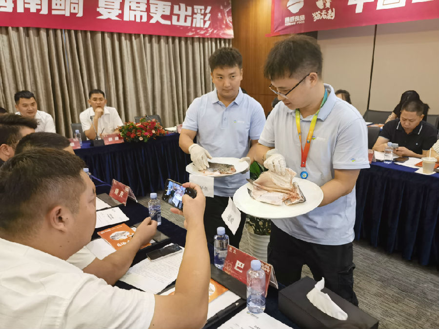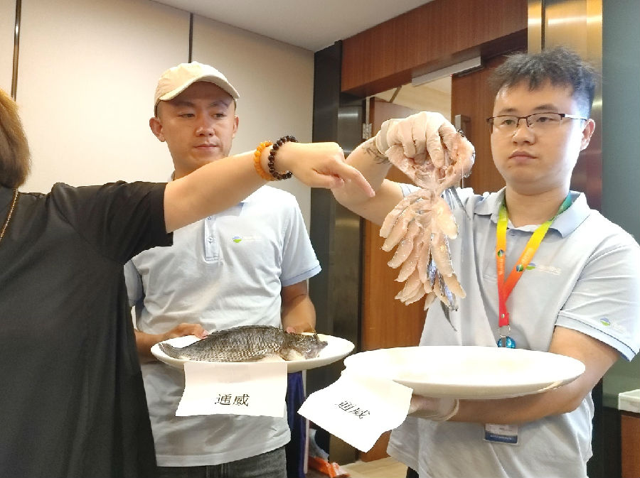會議現(xiàn)場,研發(fā)部將通威產(chǎn)品與友商產(chǎn)品、通威產(chǎn)品與普通鮮活魚做了實物對比展示,通威產(chǎn)品的高品質(zhì)再次獲得來賓的肯定。