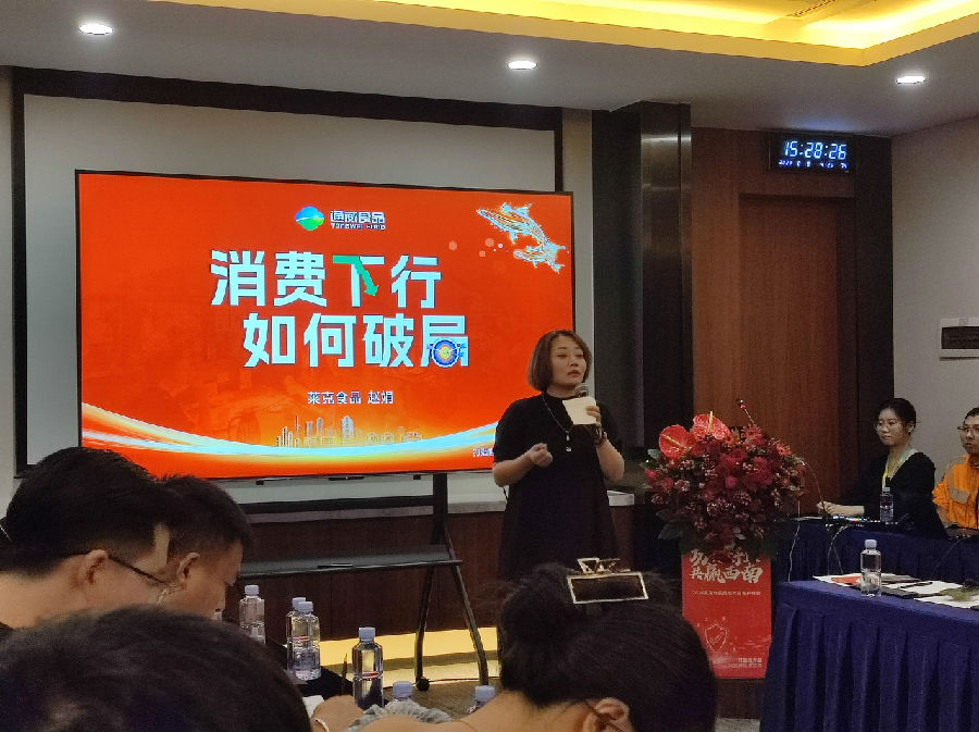 座談環(huán)節(jié),萊克食品趙娟對餐飲行業(yè)在經(jīng)濟下行大環(huán)境中如何破局做了深入剖析,并帶領(lǐng)來賓通過視頻直播連線的創(chuàng)新方式直觀體驗到一條海南鯛在海南超級工廠里如何從活魚蛻變成為高品質(zhì)產(chǎn)品全過程。