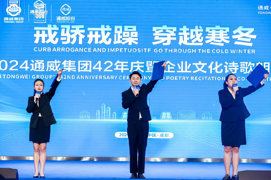 9月20日,通威集團42年慶暨“戒驕戒躁 穿越寒冬”企業(yè)文化主題詩歌朗誦會在通威國際中心隆重舉行。此次活動旨在通過詩歌朗誦的形式,傳承和弘揚通威集團的企業(yè)精神,激勵全體員工在復雜多變的市場環(huán)境中保持定力,共同迎接挑戰(zhàn),穿越寒冬。