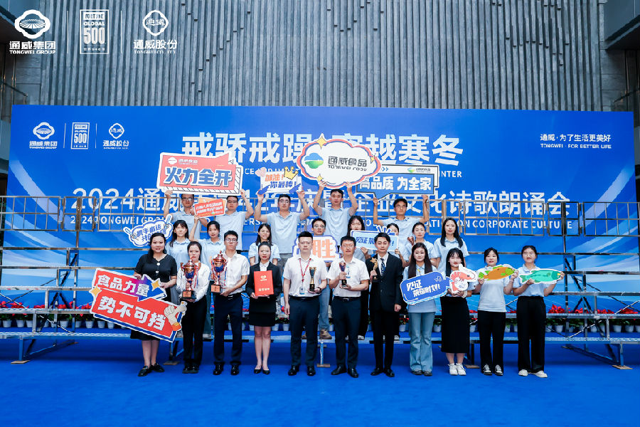 來自集團各板塊的十支團隊紛紛登臺,用深情并茂的朗誦表達了對通威文化的理解與熱愛。其中,通威食品團隊《堅守的力量》榮獲季軍。