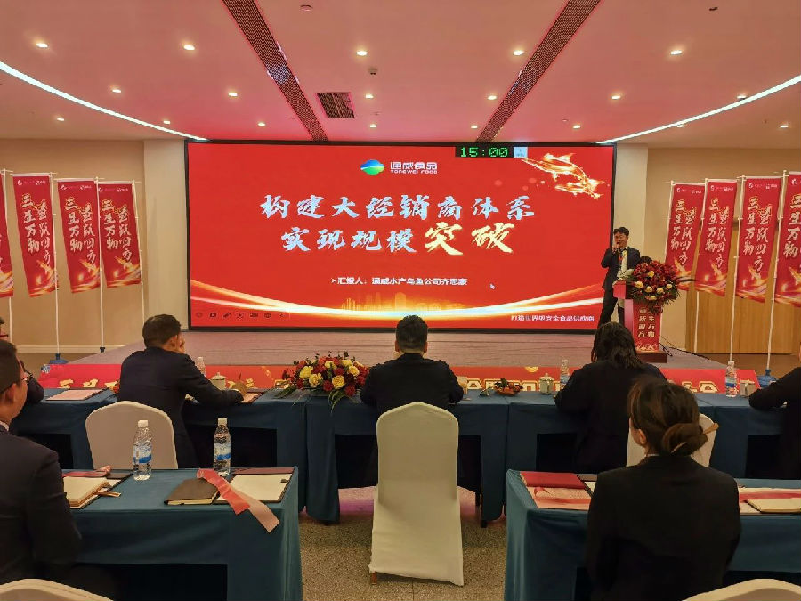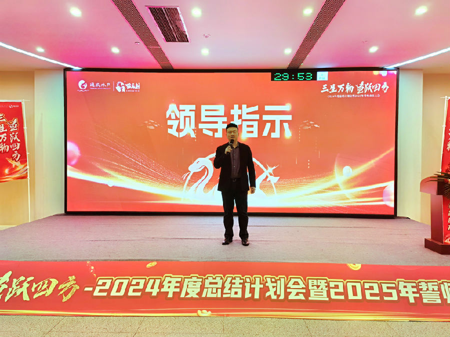 2025年1月21日,通威食品三魚(yú)板塊“三生萬(wàn)物·魚(yú)躍四方”2024年總結(jié)與2025年計(jì)劃會(huì)暨誓師動(dòng)員大會(huì)在崇州隆重舉行。通威食品總經(jīng)理陳波、通威食品副總經(jīng)理薛峰、通威食品總經(jīng)理助理王珊,通威水產(chǎn)和萊克內(nèi)銷(xiāo)全體干部員工齊聚一堂,共襄盛會(huì)。