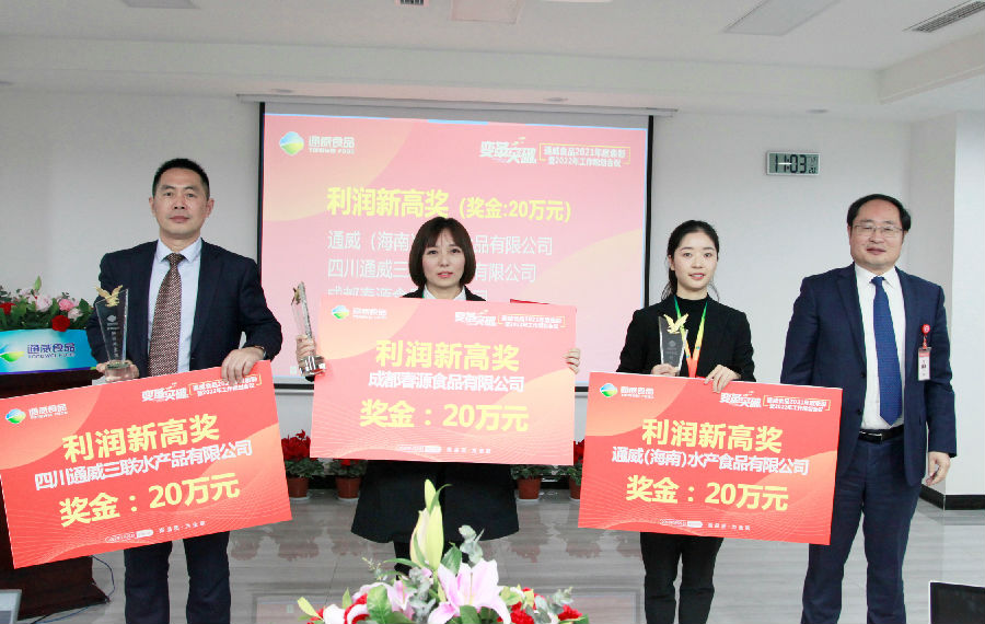 會(huì)上,四川通威食品有限公司人力資源總監(jiān)黃勁松宣讀了2022年通威食品組織架構(gòu)調(diào)整及人事任免,各板塊分管領(lǐng)導(dǎo)分別就板塊2022年的工作做了詳細(xì)部署。隨后,食品板塊對(duì)2021年度優(yōu)秀員工和團(tuán)隊(duì)進(jìn)行表彰,此次共通報(bào)表彰優(yōu)秀員工31名、優(yōu)秀部門經(jīng)理8名、優(yōu)秀團(tuán)隊(duì)4個(gè)、優(yōu)秀管理案例6個(gè),并頒發(fā)年度挑戰(zhàn)獎(jiǎng)、變革推動(dòng)獎(jiǎng)和利潤(rùn)新高獎(jiǎng)等單項(xiàng)獎(jiǎng)勵(lì),公司領(lǐng)導(dǎo)為獲獎(jiǎng)的項(xiàng)目、團(tuán)隊(duì)及個(gè)人頒發(fā)了獎(jiǎng)牌、獎(jiǎng)杯和證書(shū)。