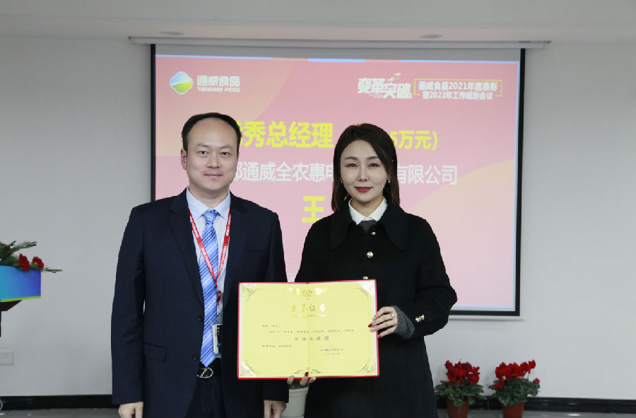 1月21日,通威食品召開(kāi)2021年度表彰及2022年工作規(guī)劃會(huì)議。通威股份副董事長(zhǎng)嚴(yán)虎、四川通威食品有限公司董事長(zhǎng)兼總經(jīng)理陳波、副總經(jīng)理薛峰、總經(jīng)理助理李天文及各公司總經(jīng)理、中干共計(jì)70余人以“現(xiàn)場(chǎng)+視頻”的形式參加會(huì)議。