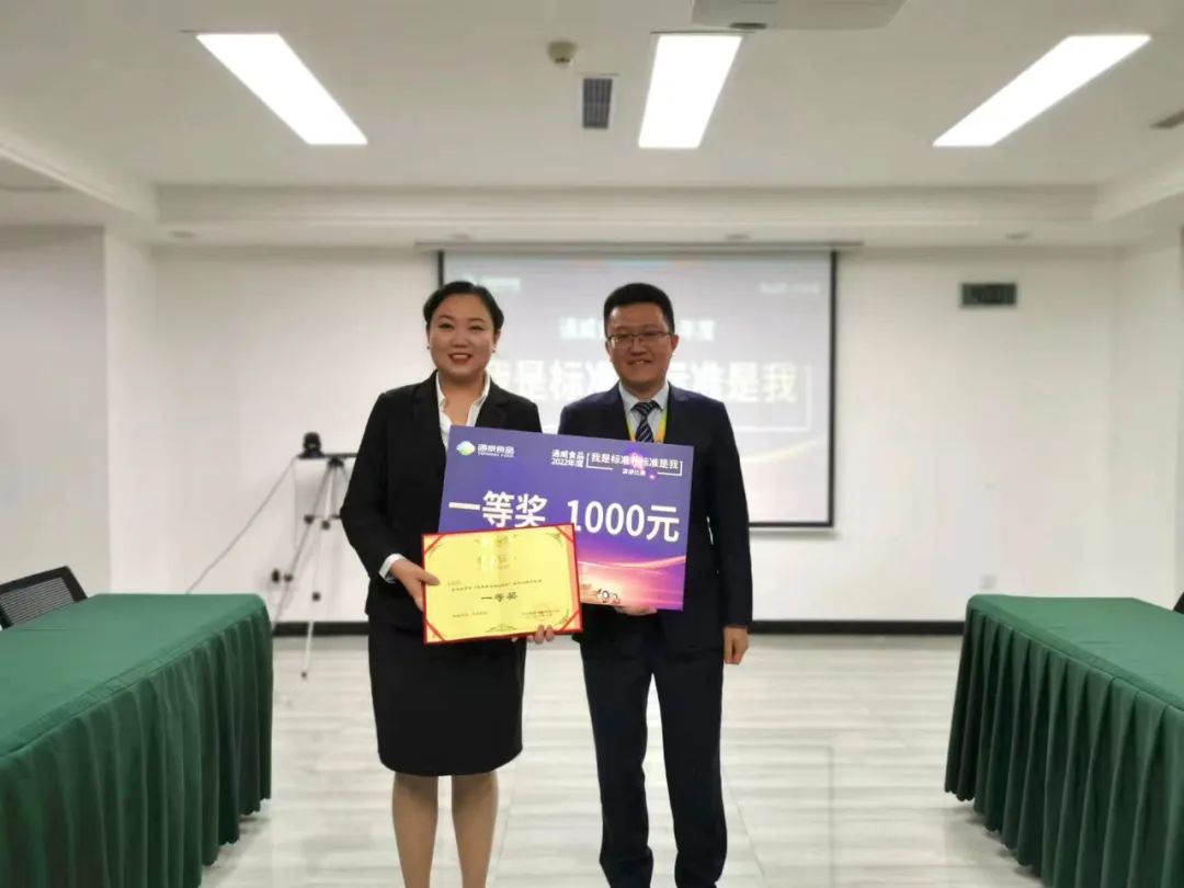 (通威食品人力資源總監(jiān)黃勁松為一等獎選手頒獎)