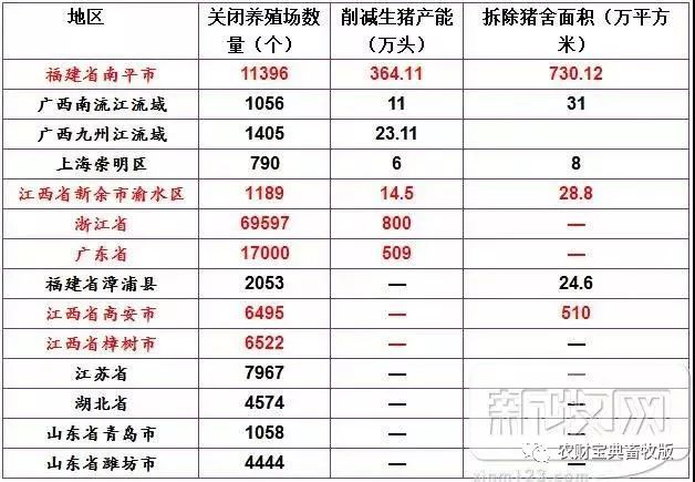 據(jù)農(nóng)財(cái)寶典新牧網(wǎng)記者不完全統(tǒng)計(jì),截止至11月15號(hào)的整治數(shù)據(jù)(如下表所示),超過(guò)10萬(wàn)家養(yǎng)豬場(chǎng)被拆遷,目前被拆遷關(guān)閉豬場(chǎng)已經(jīng)導(dǎo)致生豬產(chǎn)能縮減1700萬(wàn)左右。